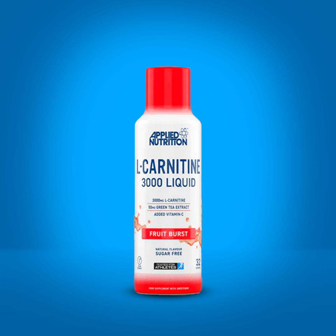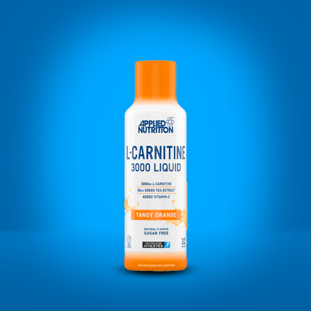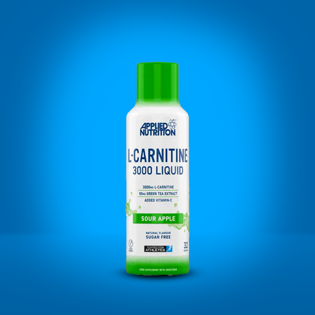 Applied Nutrition’s L-Carnitine Liquid supplement containing 50mg of Green Tea Extract and 3000mg of L-Carnitine per 15ml per serving.